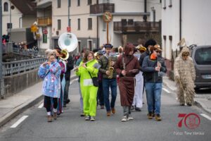 Cerkno je bilo v zadnjih tednih obarvano s pustno tradicijo – Laufarijo, ki letos praznuje 70 letnico ponovne oživitve. Na pustno nedeljo se je odvil osrednji dogodek te tradicije – branje obtožnice Pustu. Na povorki po ulicah Cerkna smo sodelovali tudi člani Društva godbenikov Cerkno (foto: Sašo Tušar).